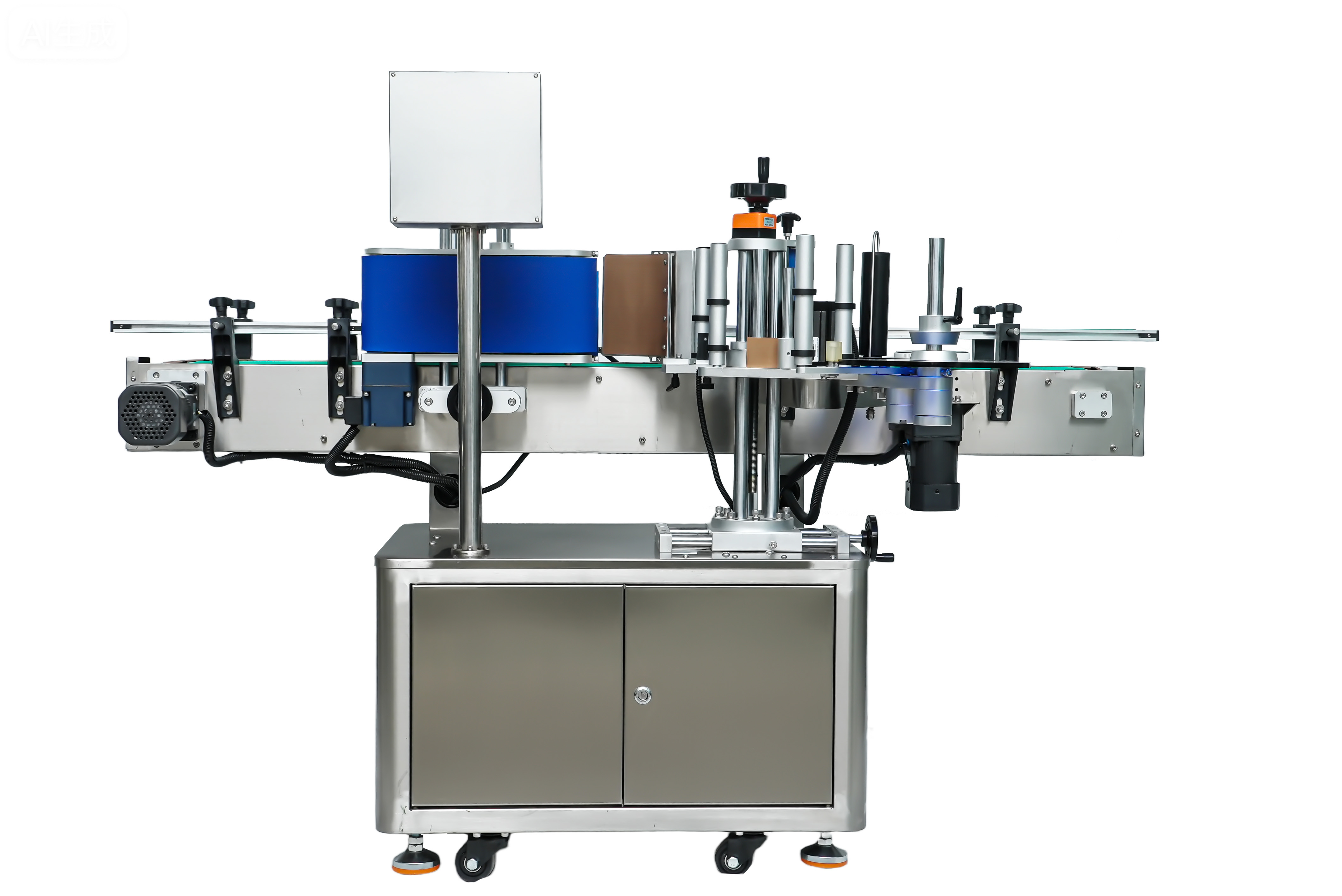 ◆核心工作原理:產(chǎn)品通過輸送帶平穩(wěn)傳送至特定的貼標(biāo)區(qū)域,當(dāng)傳感器敏銳檢測到產(chǎn)品到達(dá)指定位置后,貼標(biāo)機(jī)構(gòu)即刻啟動(dòng)。搓滾裝置以獨(dú)特的滾動(dòng)方式運(yùn)作,巧妙地將標(biāo)簽從標(biāo)卷上精準(zhǔn)剝離,然后借助摩擦力,將標(biāo)簽恰到好處地搓滾貼附在產(chǎn)品表面。在整個(gè)貼標(biāo)過程中,精密的控制系統(tǒng)時(shí)刻保持對產(chǎn)品位置以及標(biāo)簽輸送情況的實(shí)時(shí)監(jiān)測,確保標(biāo)簽?zāi)軌驕?zhǔn)確無誤地貼附在產(chǎn)品的預(yù)定位置,保證貼標(biāo)質(zhì)量的準(zhǔn)確性與穩(wěn)定性。